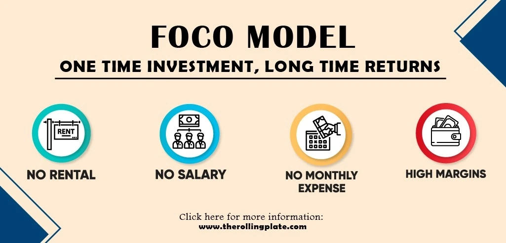 Franchise holders, known as Unit Franchise, operate under the FOCO model. FOCO, or franchisee-owned, company-operated, is a smart business model. It allows you to invest in a Cloud Kitchen franchise starting at just 2.9 lakhs in India. With low investment, you get a chance to earn high profits. This model ensures that the company operates the cloud kitchen online, allowing franchisees to benefit from high profits with low initial investment. It's a win-win situation, offering a profitable and accessible food business opportunity for those interested in the food industry in India.